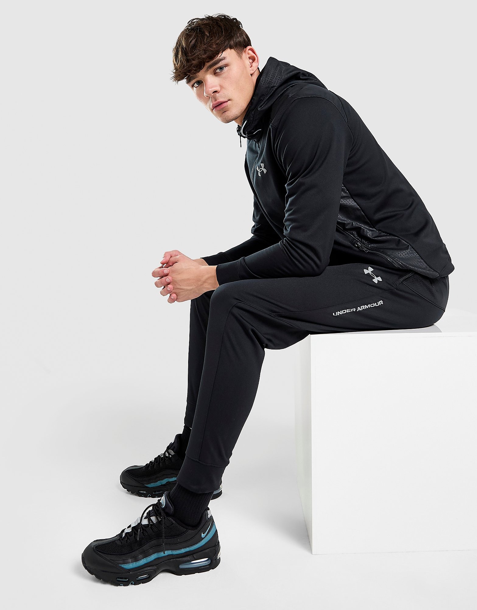 Exclusief bij JD. Geef je dagelijkse energie met deze Brawl trainingsbroek voor heren van Under Armour. Deze trainingsbroek is verkrijgbaar in een zwarte kleur voor snelle styling en is gemaakt van lichtgewicht polyester dat superzacht aanvoelt. De broek heeft taps toelopende pijpen en omgeslagen enkels voor een gestroomlijnde, comfortabele pasvorm en een elastische tailleband met een verstelbaar trekkoord. Ritszakken bieden handige opbergmogelijkheden. Afgewerkt met het iconische Under Armour-logo. Machinewasbaar. | Ons model is 1,83 m lang en draagt maat M.. Material: 100% polyester